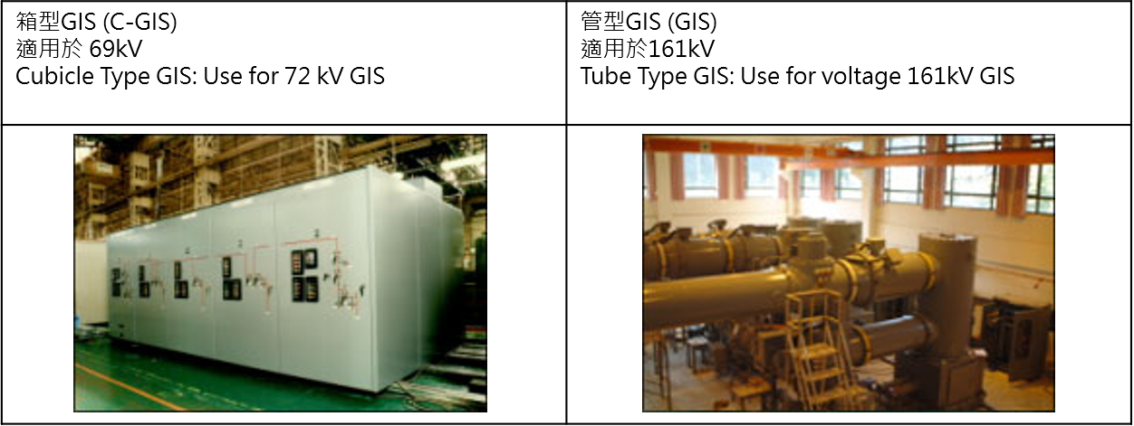 六氟化硫氣體絕緣開關場裝置 (SF6 Gas Isolated Switchgear)隨著時代的變遷,人類居住的環境與空間愈來愈少,GIS也隨時間變遷體積愈來愈小,以往GIS由管型變成箱型,由室外移至室內。