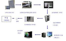 當太陽光照設太陽光板模組,太陽光電板將太陽能轉換成電能,產生直流電,直流接線盒接收所所直流信號送至交直流轉換器,將直流電轉換成110V之交流電,此時交流電再與台電之市電並聯,此時太陽能所發的電就能為用戶所用。